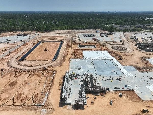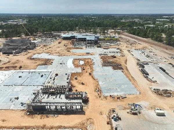 Construction at the new Spring High School continues to make strong progress, with several key areas moving forward this month. Work on the concrete slab is moving in the right direction. The entire 9th grade wing slab has now been completed, marking an important milestone in the building’s foundation. Preparation of the ground (subgrade) is now complete for the baseball field, softball field, and tennis courts. Work has also begun on underground plumbing for the athletic concession building, laying the groundwork for future construction. The band parking lot has been fully poured since the last update and is now complete, providing improved access and functionality for the campus. The detention pond continues to take shape as earthwork progresses. This feature will help manage stormwater and protect the surrounding area. Construction of the pool is advancing well. The pool floor has been poured, and crews are actively applying shotcrete to form the pool walls. Overall, each completed step brings the Spring High School campus closer to becoming a fully functional and welcoming space for students and the community.